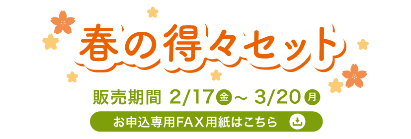 お得な期間限定セットです。お申込みは専用FAX用紙をダウンロードの上、お申込ください。